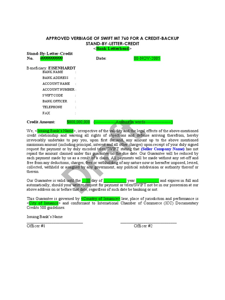 Lettera di credito: cos'è e come funziona | Agicap lettera di credito stand by (SBLC): presenta una garanzia ulteriore, in quanto la quale la banca si impegna a pagare il beneficiario del credito anche qualora il debitore risultasse inadempiente; lettera di credito trasferibile: consente di trasferire una parte o la totalità dell'importo a un altro beneficiario;