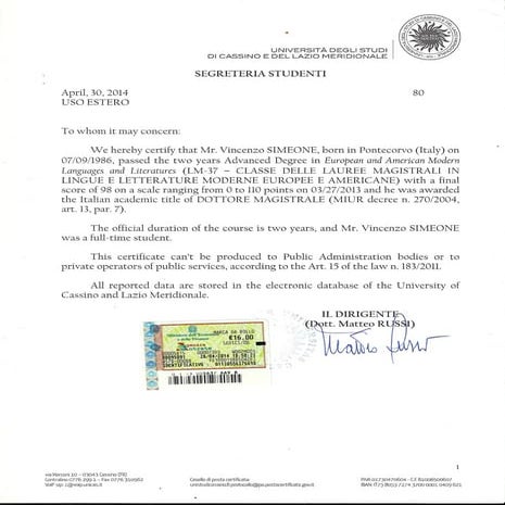 Lettera di Referenze Prof. Baronti - SlideShare Cassino 12/11/2012 In qualità di Preside dei Corsi di Studio in Lingue e Letterature Moderne del Dipartimento di Lettere e Filosofia dell'Università degli ...